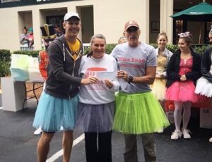 Matt Clark (Horizon), Sandy Gillis (Deep Well), and Al Olivetti (GoTri Sports) holding a donation check following last year’s Nutcracker 5K charity race event.